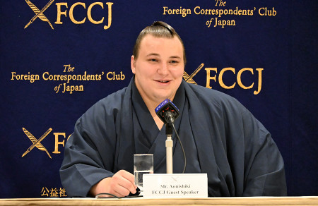新小結で臨んだ大相撲秋場所で11勝を挙げ、大関昇進の有力候補となった安青錦(21)=ウクライナ出身=が9日、日本外国特派員協会で会見し、「力士になったからには、横綱を目指してやっていく」と夢を語った。 【時事通信社】