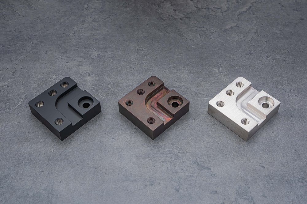 製造業界では装置の高機能化・多様化が進み、機械部品の耐久性や外観に対する要求が非常に高まっています。特に、中程度の硬度を持ち、金型や位置決めプレート、治具等に使用されるプリハードン鋼(NAK材など)については、強度に加え、摩耗や腐食への耐性を高めたいというニーズがあります。また、電機・光学機器分野などでは、ステンレス材(SUS材など)の腐食耐性に加え、光の反射を防ぐ艶消しされた黒色の外観が必要となることがあります。