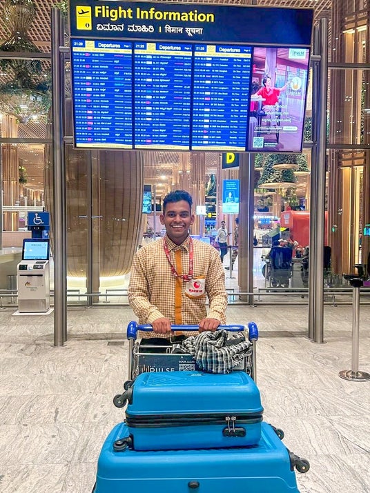 ベンガルール空港から日本へ旅立つインド人トラックドライバー第一号のラケッシュ