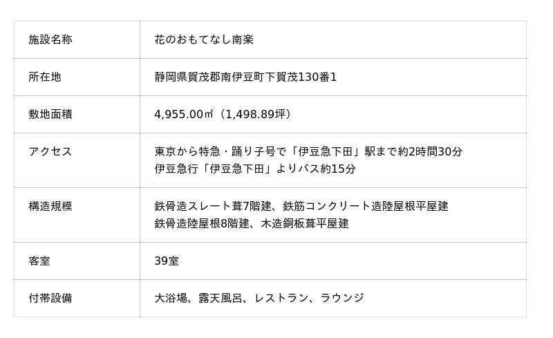 伊豆下田エリア屈指の毎分 200リットルを超える自家源泉を保有し、多人数利用も取り込める全室 50 平方メートル 以上の広い客室を有する旅館