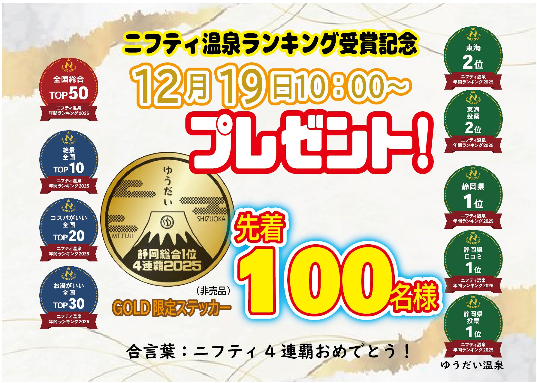 2. ニフティ温泉4連覇記念