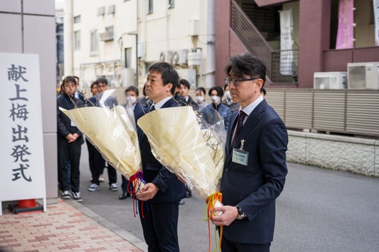 本日、令和7年12月19日(金)、熱海市は、熱海梅園で育った早咲きの紅白梅(白梅:冬至梅、紅梅:八重寒紅)を仙洞御所へ献上し、第57回目となる「献上梅出発式」を執り行いました。この長い歴史は、熱海の梅が持つ自然環境の価値と、文化的な背景を今に伝えるものです。
