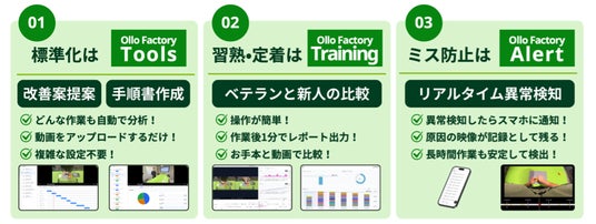 国内工場においては、作業分析に加え『Ollo Factory』を活用したリアルタイム異常検知の利用も開始します。
