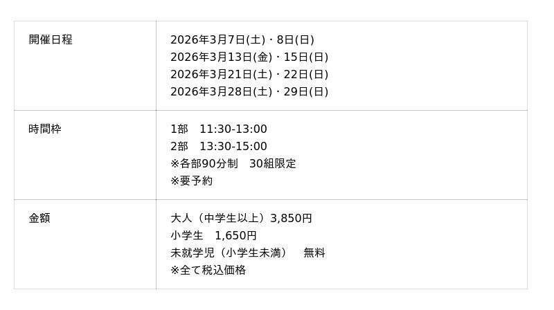 カップルやご友人、お子様連れでも楽しんでいただけるブッフェイベントとなっており、特に若い世代には馴染みのない「オーベルジュレストラン」という場所をこのようなイベントを通じて少しでも多くの人に知ってもらえたら嬉しいです!
