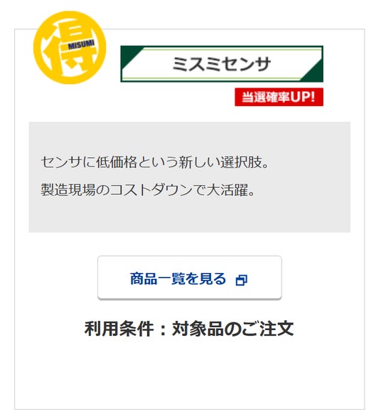 「お得も、楽も、選べる。」“使ってミスミ”得楽キャンペーン実施のお知らせ