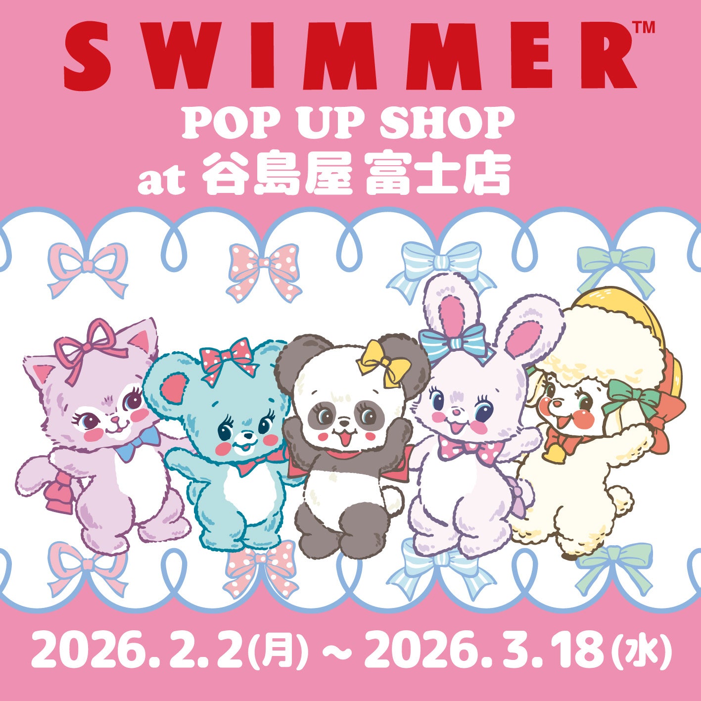 アイピーフォー株式会社(本社:東京都豊島区、代表取締役社長:小濱 剛)がライセンスを取り扱っている大人気雑貨ブランド「SWIMMER」のPOP UP SHOPを、谷島屋 富士店で2026年3月18日(水)まで開催中!”かわいいがぎゅっ!”とつまったPOP UP SHOPにぜひお越しください♪
