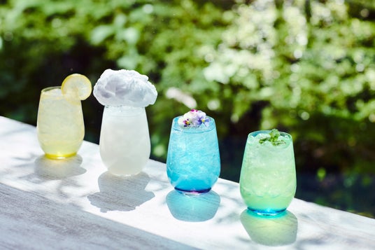 ピーマン通りのキッチンカーでは、訪れた日の天気をイメージした「今日のお天気レモネード」を販売します。「晴れ」「曇り」「晴れのち雨」「雨」の4種類の天気を、色鮮やかなシロップやトッピングで表現。なかでも、「晴れのち雨」を表現したレモネードは、刻一刻と変わる天気を、梅雨の風物詩である紫陽花をイメージした色のグラデーションで表現しました。また、「曇り」を表現したレモネードは、どんよりした曇り空を、コップの上に大きく乗せた綿菓子で表現しており、見た目のインパクトはもちろん、綿菓子を溶かしながら味の変化も楽しめます。訪れた日の天気によって、異なる見た目や味わいを楽しめる一杯です。