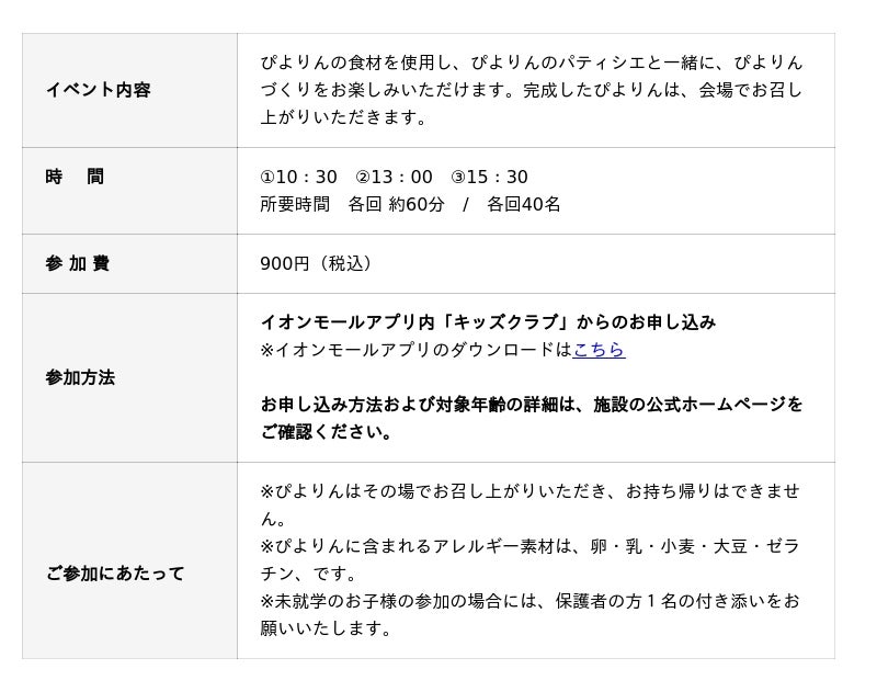 つくって楽しい、食べておいしい!「ぴよりん」手づくり体験を「イオンモール扶桑」にて開催決定