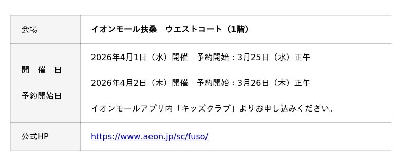 ジェイアール東海フードサービス株式会社(本社:愛知県名古屋市、代表取締役社長:岩下賢一)が展開するオリジナルスイーツ「ぴよりん」の手づくり体験ができるワークショップを、2026年4月1日(水)・2日(木)の二日間、「イオンモール扶桑」にて開催いたします。本イベントでは、ぴよりんの製造工程の一部を体験しながら、自分だけのぴよりんを手づくりで仕上げていただけます。完成後は、その場でできたてをお召し上がりいただけます。普段はなかなか見ることのできない“ものづくりの楽しさ”を体感できる、体験型ワークショップです。